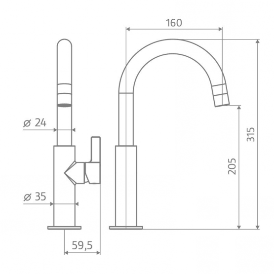 - Auslauf, 360° schwenkbar- Ausladung 160 mm