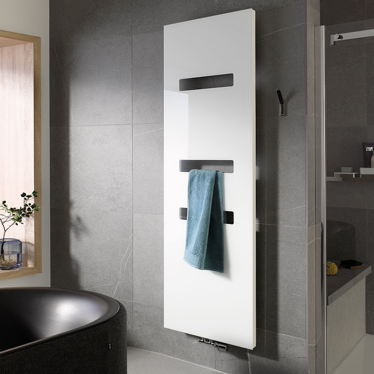 Schwebt flach auf der Wand und ist mit seiner modernen Formgebung ein wirkliches Design-Highlight: der neue Atelier Highline Designheizkörper. Sowohl die weiße Echtglasfront (62 x 186 cm) als auch die Ausführung mit farbiger Metallfront (61 x 186 cm) besitzen drei angenehm geformte Aussparungen für das Überhängen von Handtüchern. Die Metallausführung bietet standardmäßig die Farben weiss matt und graphit schwarz, erlaubt aber auch den Wunsch nach individueller Gestaltung mithilfe vielfältiger Sonderfarben. Der Atelier Highline mit edler Glasfront überzeugt durch ein frisches Weiß. Dank seiner Anschlussflexibilität ist der Atelier Highline auch im Elektrobetrieb einsetzbar.