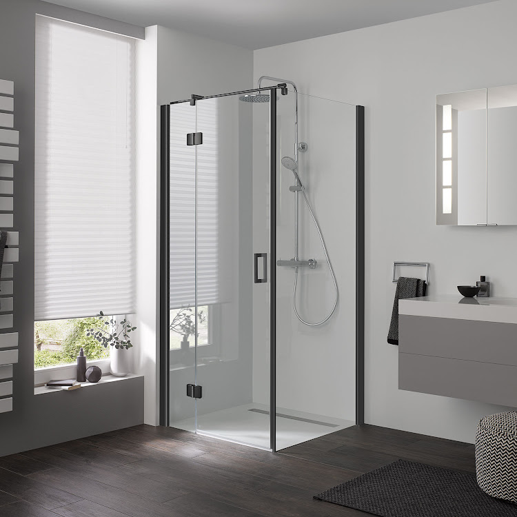 HSK Duschkabine Aperto Drehtür pendelbar an Nebenteil mit Seitenwand Klar hell | Seitenwand 100cm | Schwarz-matt