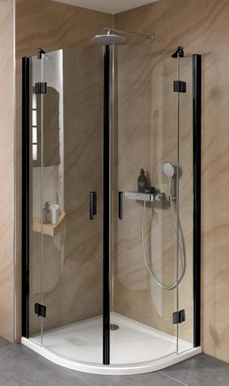 HSK Duschkabine Aperto RUNDDUSCHE pendelbar, 4-TEILIG Klar hell | 90x100 R | Schwarz-matt