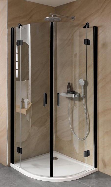 HSK Duschkabine Aperto RUNDDUSCHE pendelbar, 4-TEILIG Klar hell | 90x120 R | Schwarz-matt