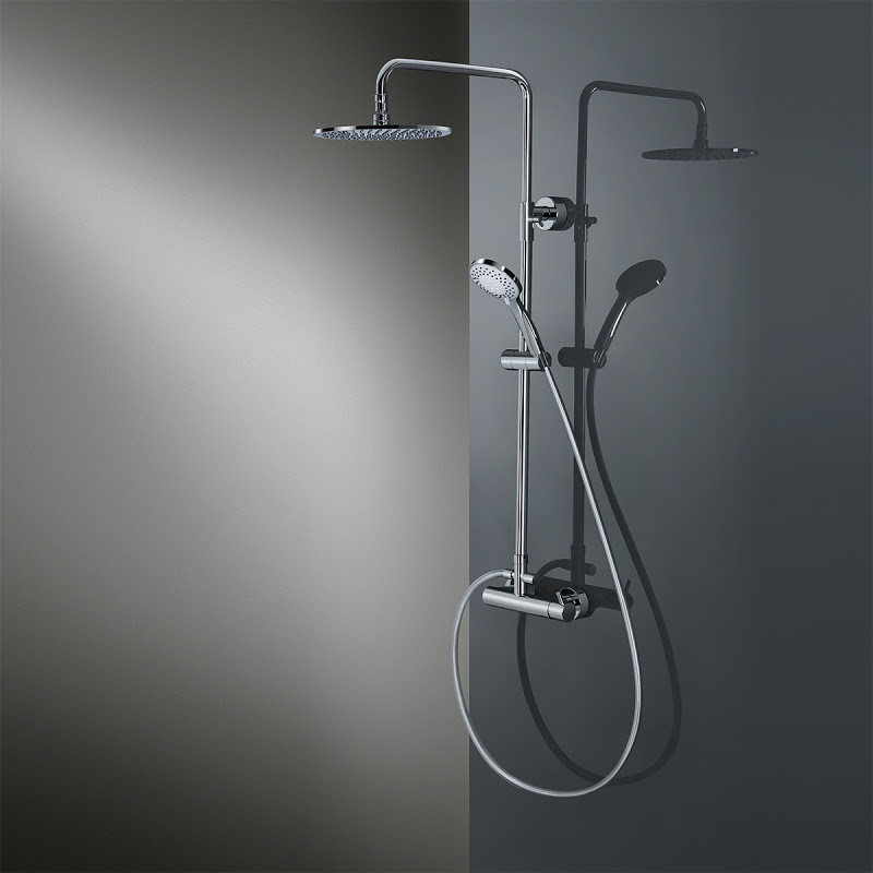 • Standardmäßig mit Kopfbrause Rund, flach, ∅ 250 mm, Höhe 8 mm