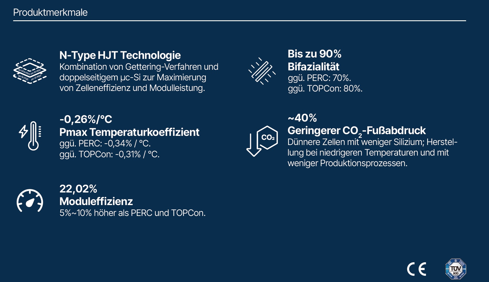Doppelglas HJT PV-Modul   mit 30 Jahre Produkt-Garantie und 30 Jahre lineare Leistungsgarantie