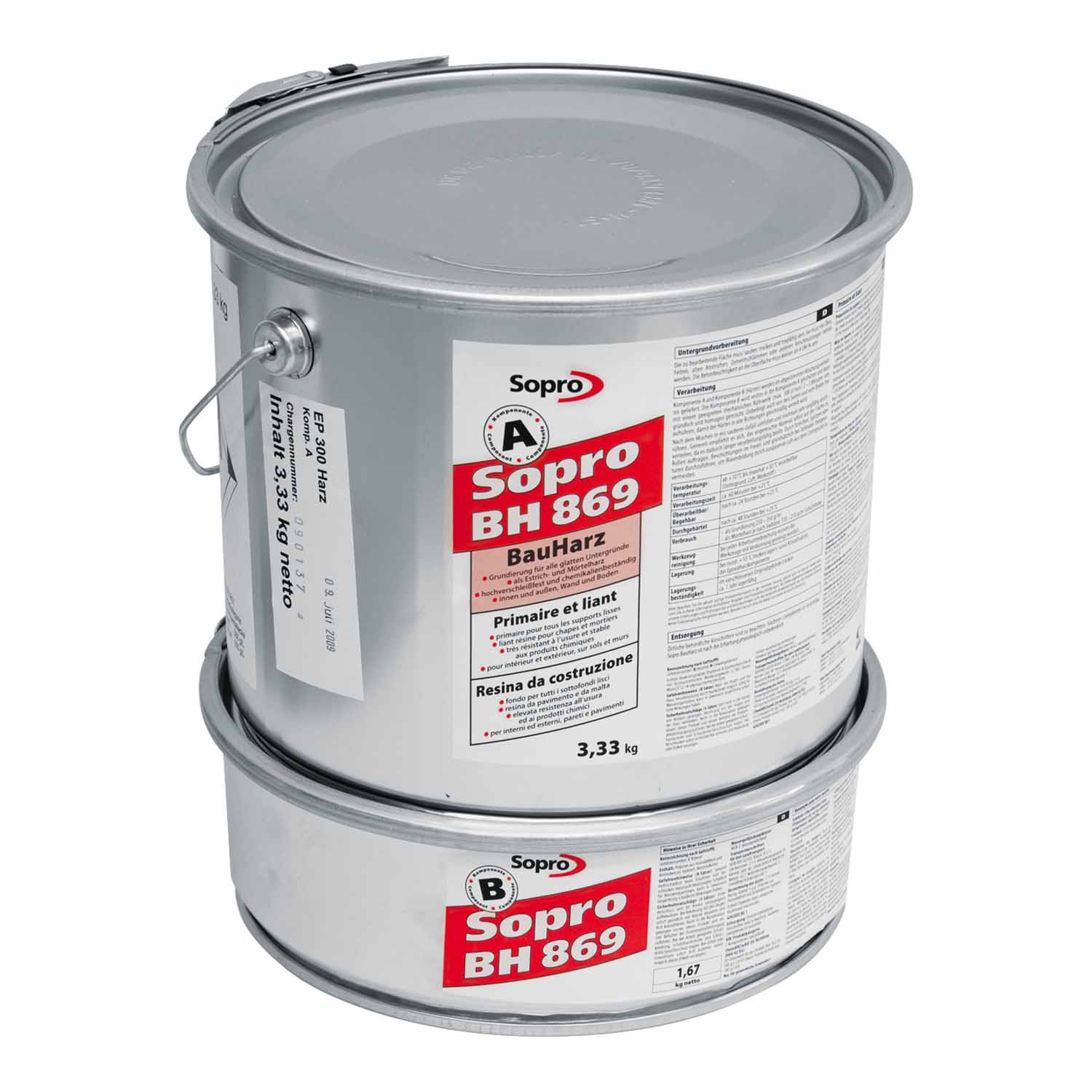 Zweikomponentiges Bauharz auf Epoxidharzbasis. Je nach Anwendungsfall mit Sopro Quarzsanden abmischbar. Unter anderem zur Herstellung von dünnschichtigen Kunstharz- bzw. Drainagemörteln in Verbindung mit Sopro EpoxiEstrichKorn bzw. Sopro DrainageEstrichKorn.